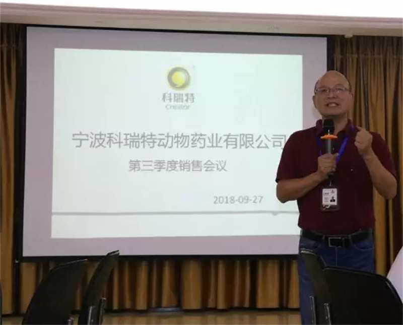 2018年9月27日,寧波科瑞特動物藥業(yè)有限公司在寧??偛空匍_2018年第三季度銷售工作會議??迫鹛乜偨?jīng)理郭瑞忠、行政副總劉瓊鮮、營銷副總王先明、總工程師王亞佩、生產(chǎn)副總于自勛、銷售總監(jiān)姚欣,會同銷售系統(tǒng)全體人員共同出席本次會議。會議針對2018年第三季度銷售工作取得的成績和不足進(jìn)行詳細(xì)的總結(jié)和檢討;吸取成功的工作經(jīng)驗,明確下一階段的工作任務(wù)。