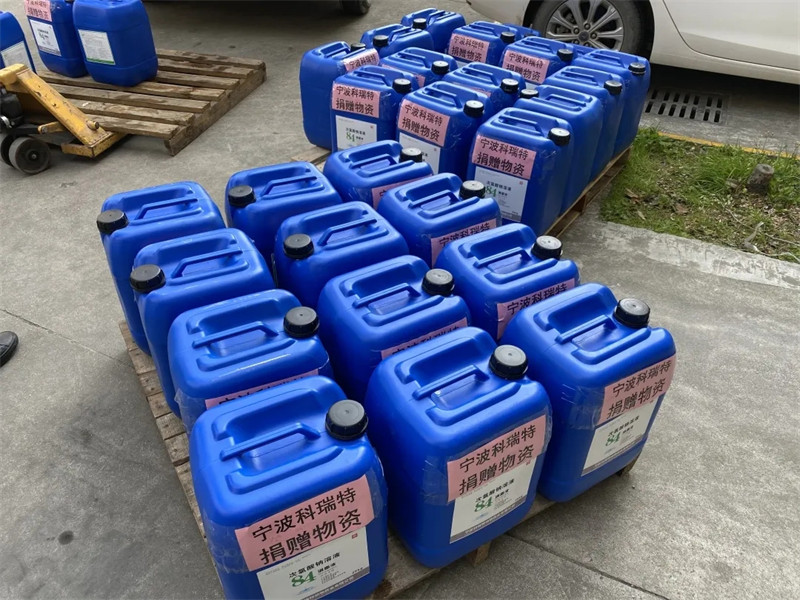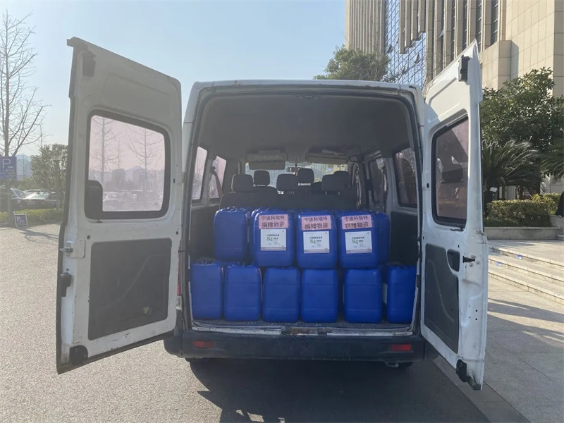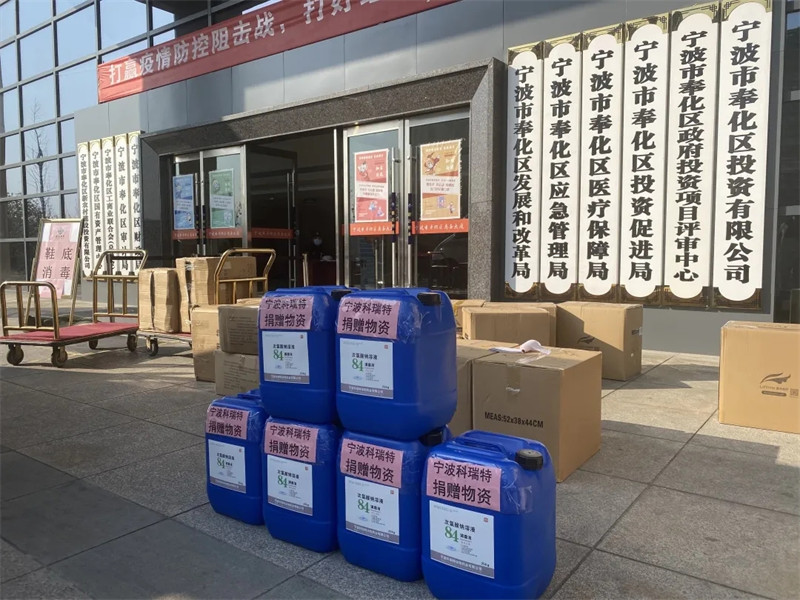 2月24日下午,寧波科瑞特動(dòng)物藥業(yè)有限公司將1噸84消毒液原液送到了寧波市奉化區(qū)應(yīng)急管理局,用于奉化區(qū)的消毒。