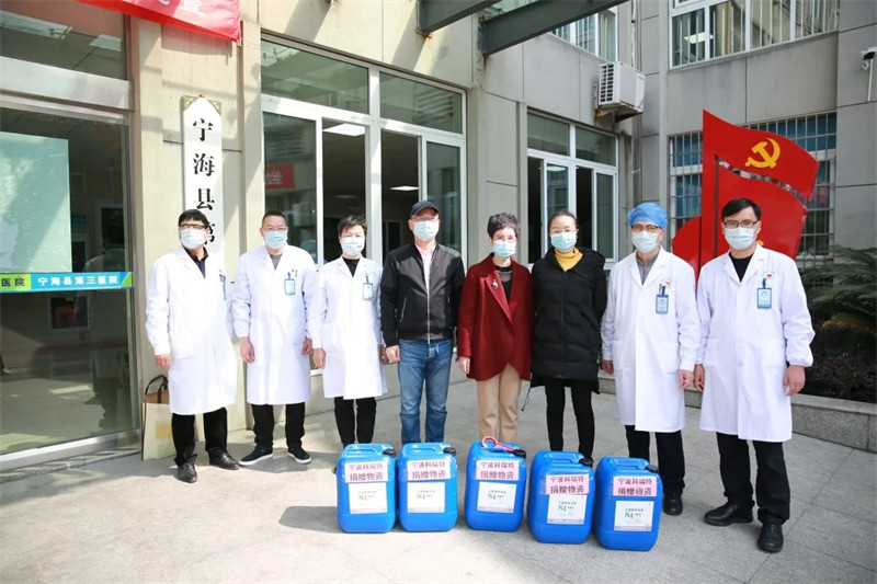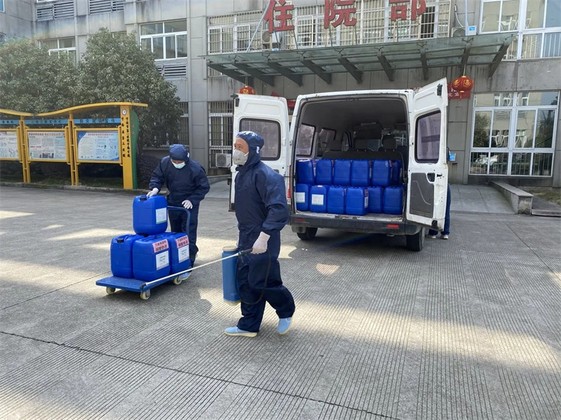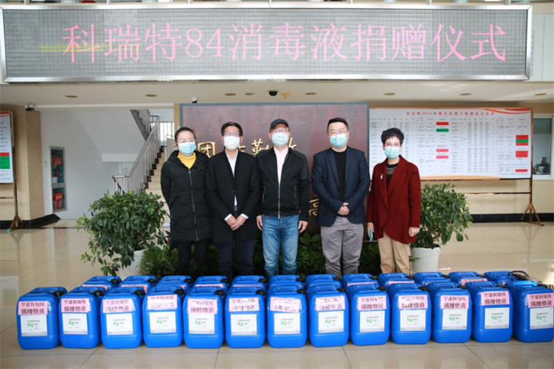 2月24日上午,寧波科瑞特動(dòng)物藥業(yè)有限公司將前一晚緊急生產(chǎn)的1噸84消毒液原液送到了西店鎮(zhèn)人民政府,用于全鎮(zhèn)行政村和縣第三醫(yī)院的消毒。