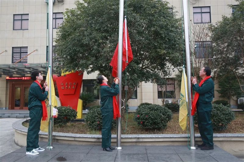 2021年1月5日8時(shí)18分,寧波科瑞特動(dòng)物藥業(yè)有限公司高層領(lǐng)導(dǎo)和全體員工在辦公樓前舉行升旗儀式。