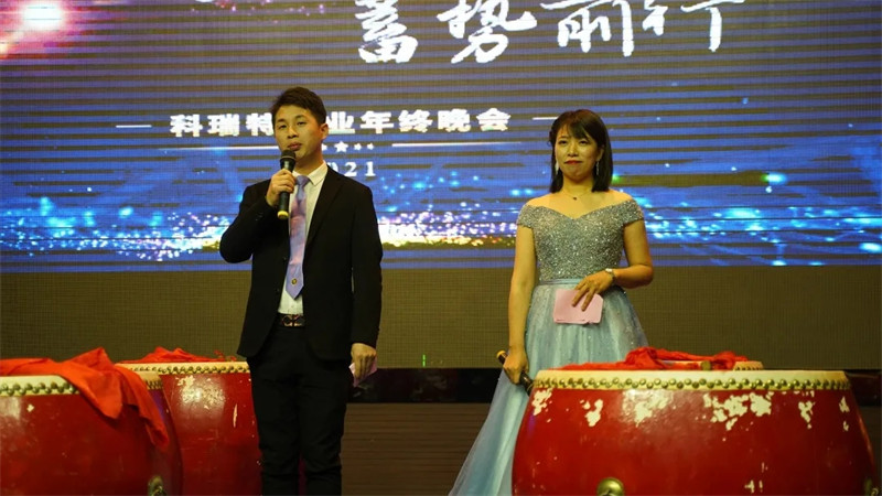 2021科瑞特迎新晚會(huì)以倒計(jì)時(shí)視頻,拉開(kāi)序幕??迫鹛貏?chuàng)始人、董事長(zhǎng)兼總經(jīng)理郭瑞忠先生為晚會(huì)致辭,郭總代表公司,向在場(chǎng)的各位各位嘉賓以及科瑞特全體家人們,表示衷心的感謝!同時(shí)向公司員工全體家屬致以誠(chéng)摯的問(wèn)候!晚會(huì)上郭總回顧2020展望2021,在激情澎湃的致辭中把晚會(huì)開(kāi)端推向高潮!