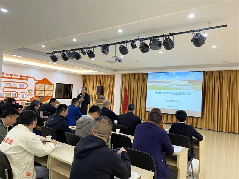 2021年3月31日-4月1日,寧波科瑞特動物藥業(yè)有限公司在寧??偛空匍_2021年第一季度銷售會議??迫鹛囟麻L兼總經(jīng)理郭瑞忠、高級副總經(jīng)理劉瓊鮮、營銷副總經(jīng)理謝璐明,會同銷售系統(tǒng)全體人員共同出席本次會議。會議總結(jié)了2021年第一季度銷售工作重點,針對2021年第一季度銷售工作取得的成績和不足進行總結(jié)和檢討;在批評與自我批評中吸取成功的工作經(jīng)驗,明確下一階段的工作任務(wù)與方向。