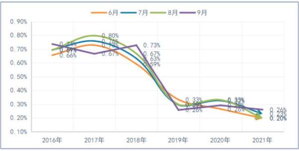山東某場連續(xù)3年,每年的6~9月份,與未使用實肯耐的前3年,同期因熱應激死淘情況比較(按1kg/噸飼料添加實肯耐)