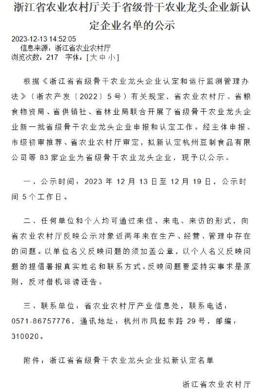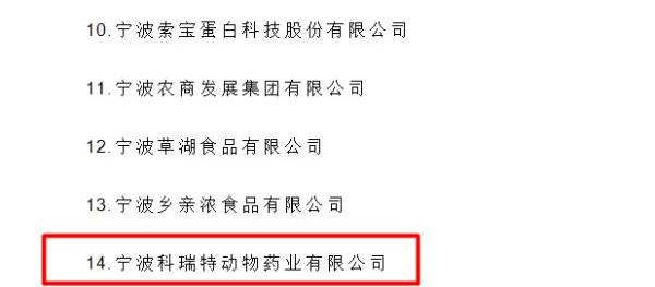 近日,根據(jù)《浙江省省級骨干農(nóng)業(yè)龍頭企業(yè)認(rèn)定和運(yùn)行監(jiān)測管理辦法》(浙農(nóng)產(chǎn)發(fā)〔2022〕5號)有關(guān)規(guī)定,省農(nóng)業(yè)農(nóng)村廳、省糧食物資局、省供銷社、省林業(yè)局聯(lián)合開展了省級骨干農(nóng)業(yè)龍頭企業(yè)新一批省級骨干農(nóng)業(yè)龍頭企業(yè)申報(bào)和認(rèn)定工作。經(jīng)主體申報(bào)、市級初審?fù)扑]、省農(nóng)業(yè)農(nóng)村廳審定,寧波科瑞特動(dòng)物藥業(yè)有限公司成功認(rèn)定為“省級骨干農(nóng)業(yè)龍頭企業(yè)”!