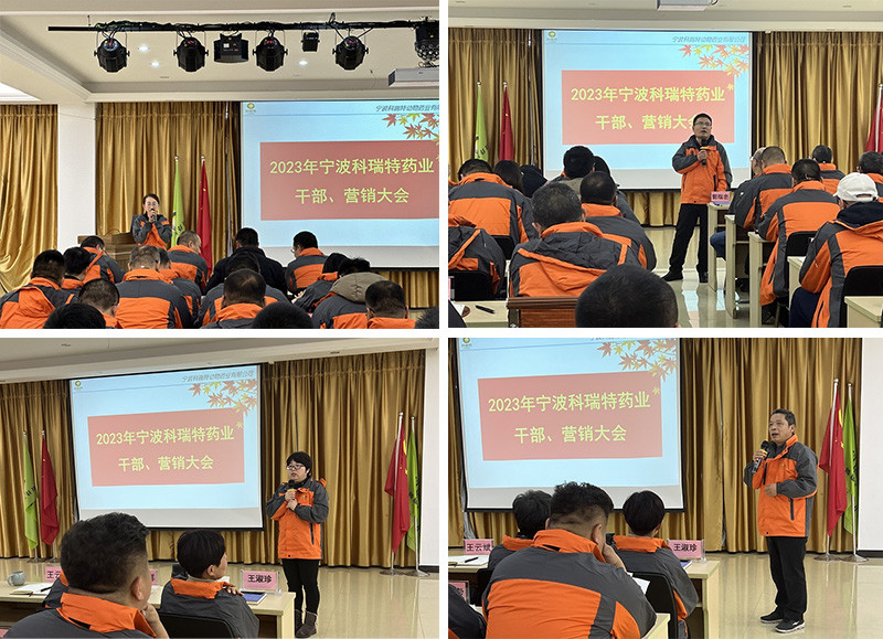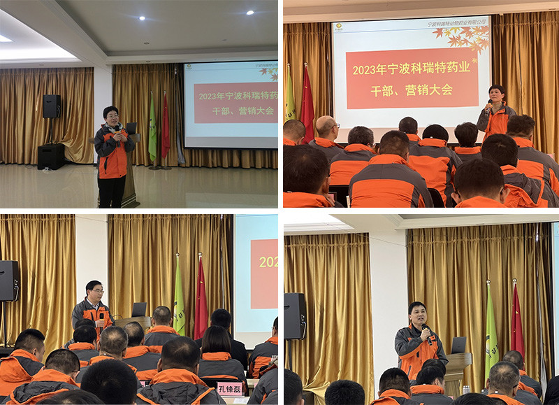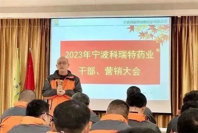 2023年1月31日-2月2日,寧波科瑞特動(dòng)物藥業(yè)有限公司在寧波總公司召開(kāi)“2023年度干部營(yíng)銷(xiāo)大會(huì)”。董事長(zhǎng)郭瑞忠先生、副董事長(zhǎng)劉瓊鮮女士、總經(jīng)理王云斌先生會(huì)同全體銷(xiāo)售人員、公司職能部門(mén)負(fù)責(zé)人共同出席。