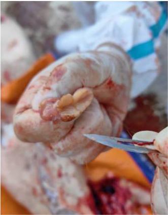 豬場存欄母豬1200頭左右,一直來較為穩(wěn)定,大約一個月前開始發(fā)病。經了解,該客戶近一年來一直使用園蘭清方案對母豬進行定期保健,但仔豬僅將掉隊豬集中治療。考慮可能入冬后氣候變化導致藍耳波動,所以建議采用園蘭清+氟苯尼考+替米考星治療,10天后回饋效果不太理想。于是讓獸醫(yī)對病豬進行解剖。病豬的肺部及淋巴結未見典型的藍耳病變,以肉樣變和出血為主,故建議對藍耳和圓環(huán)抗原抗體進行檢測,方便給出后續(xù)防治方案。
