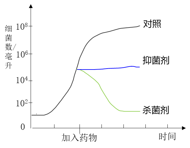 無(wú)論是殺菌劑還是抑菌劑,要想體現(xiàn)療效,還得有機(jī)體免疫力的參與,殺菌劑的劑量往往無(wú)法殺滅100%的病原微生物,抑菌劑則只是將病原微生物的數(shù)量控制在不增加,需要通過(guò)機(jī)體免疫系統(tǒng)清除剩余病原,疾病得以康復(fù)。如果沒(méi)有免疫系統(tǒng)參與,則一旦停藥,病原就會(huì)死灰復(fù)燃,再次猖獗。見圖。
