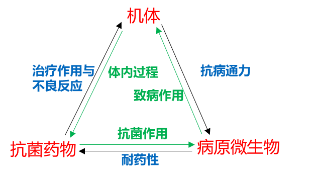 下圖描述了抗菌藥、機(jī)體和病原微生物三者之間的關(guān)系: