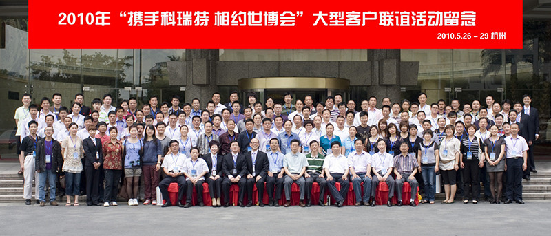 五月的杭州,風景如畫,美麗的西湖荷葉飄香絢麗多彩,氣候宜人。五月二十七日至二十九日寧波科瑞特《攜手科瑞特 相約世博會》大型客戶聯(lián)誼活動在這里舉行。來自全國各地的近兩百位科瑞特合作伙伴和客戶參加了這次聯(lián)誼活動。此次活動正值世博會在上海舉辦,為了表達科瑞特對合作伙伴和客戶的感謝,加強同合作伙伴和客戶之間廣泛交流與溝通,推廣科瑞特產(chǎn)品,宣傳科瑞特的品牌,增強合作伙伴和客戶的戰(zhàn)勝目前困難的信心而舉行的。